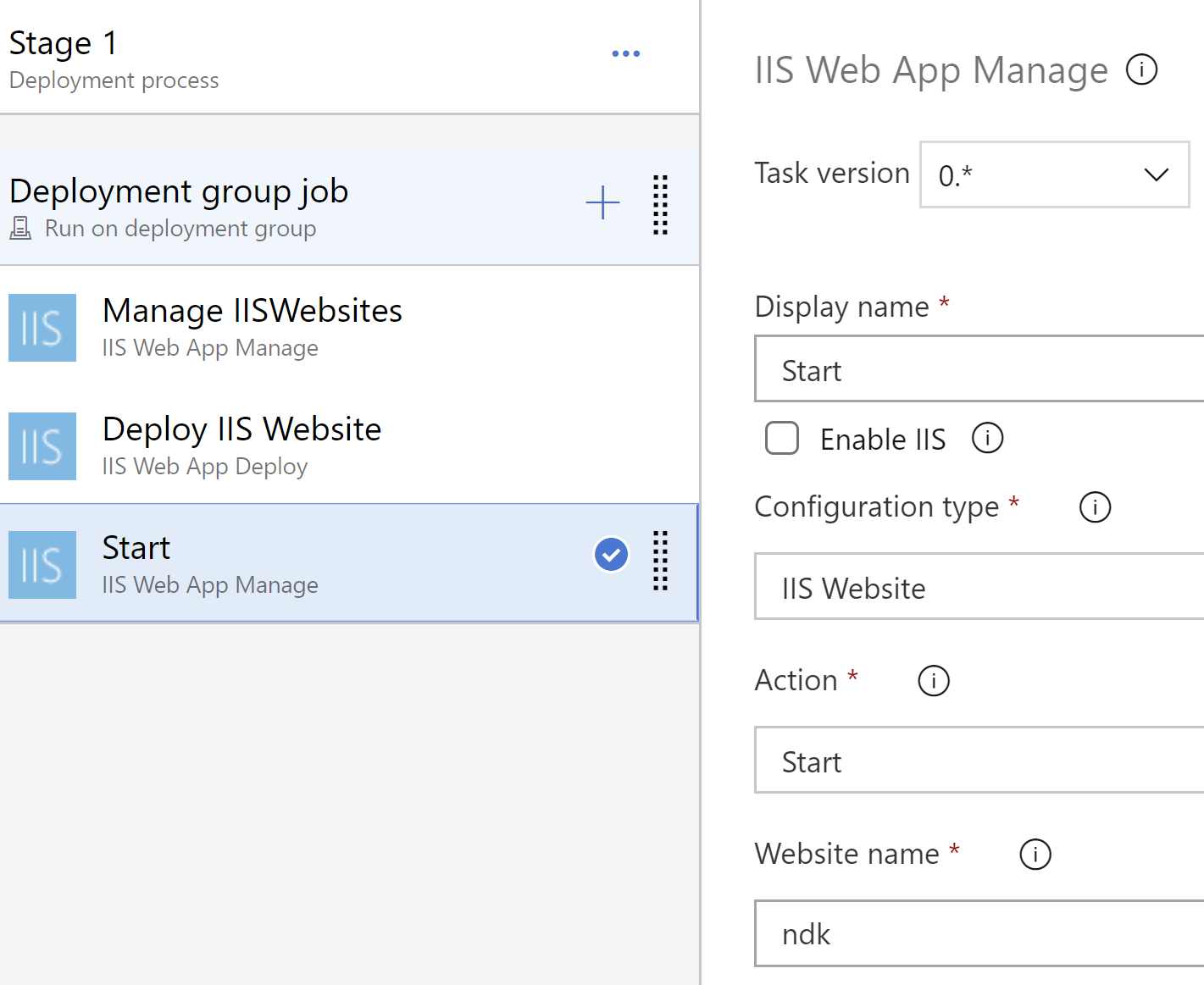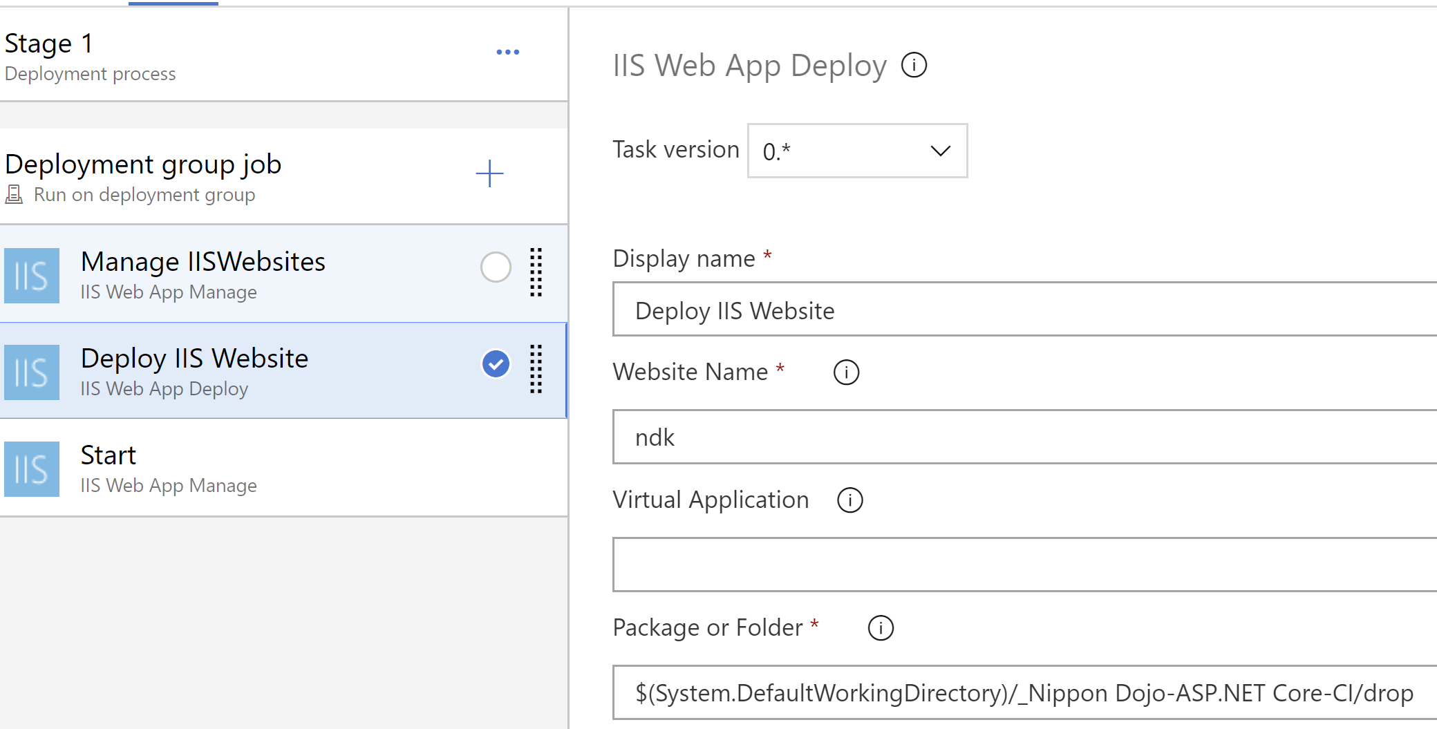 - The next 2 steps in the Deployment Group Job where pretty easy: we deploy the website content and then we start the Web Site.