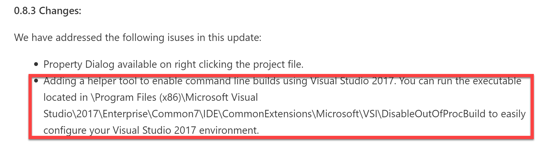 So what you need to do in your CI process (or Azure Pipeline) is to call this DisableOutOfProcBuild.exe from inside the folder of the exe itself and then build your VDPROJ.