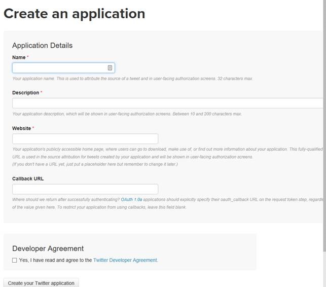 At the end we agree with the “Developer Agreement” and click on “Create your Twitter application”.