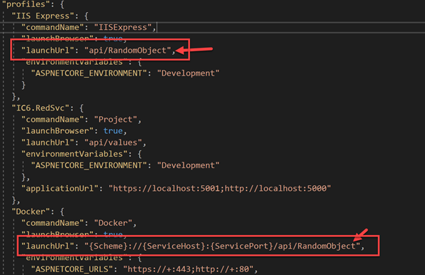 Before we start the application edit launchSettings.json to change the default page. This step makes it easier to test in our browser the API when we launch the project with F5.