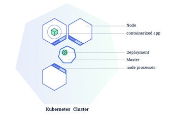 This is a Kubernetes Cluster. It is composed by a master node and working nodes. The master node is the coordinator of all the activities that happens inside a cluster. The working nodes are the computer power (most of the time they are virtual machines) that will do the job of running our code.