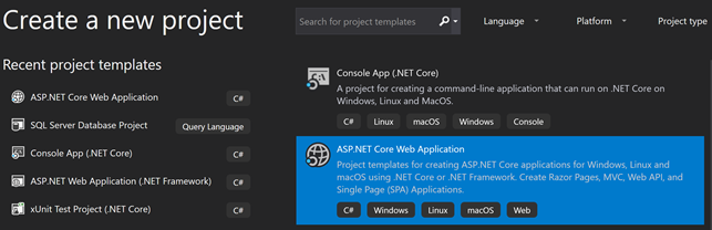 Create a new project ASP.NET Core Web Application.