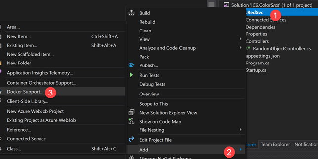 Right click on the Solution Explorer onto the Project, Add, Docker Support…