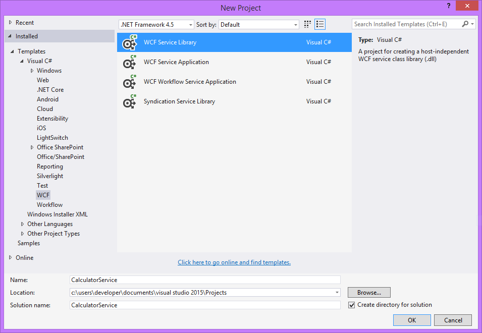 - Nuovo progetto di tipo WCF Service Library