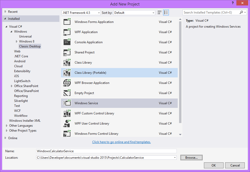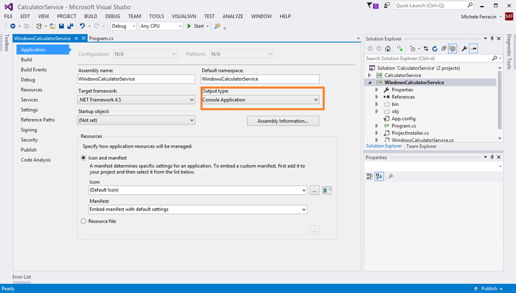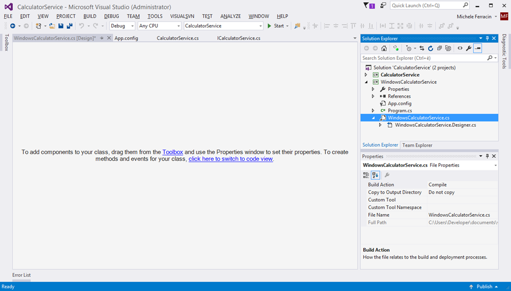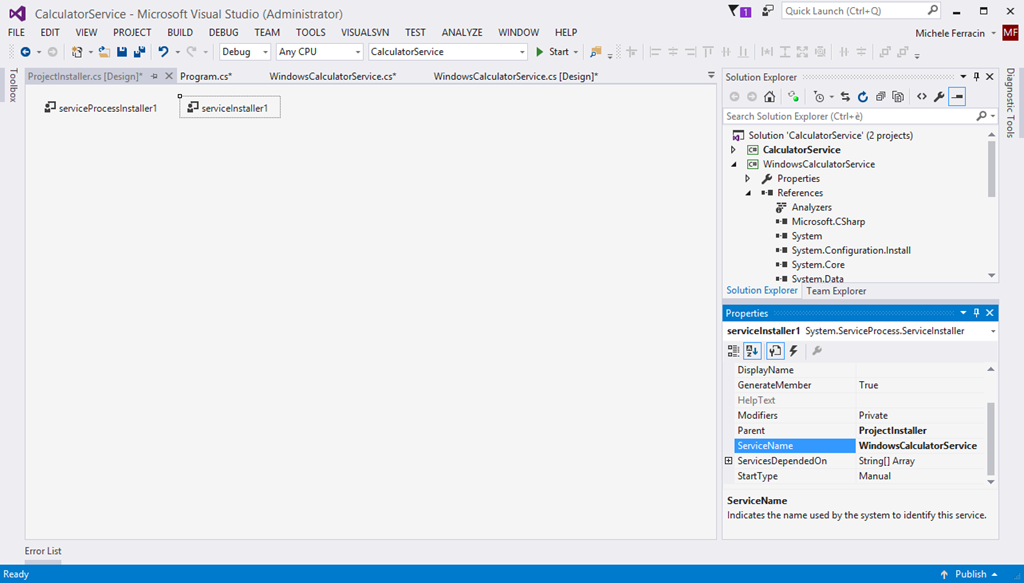 - Un po’ di rinomina sui nomi del file e del servizio che chiamo WindowsCalculatorService rendono più chiaro il lavoro.