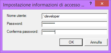 - L’installer del servizio vuole sapere con che utenza deve girare il nostro servizio. Inserisco le mie credenziali.