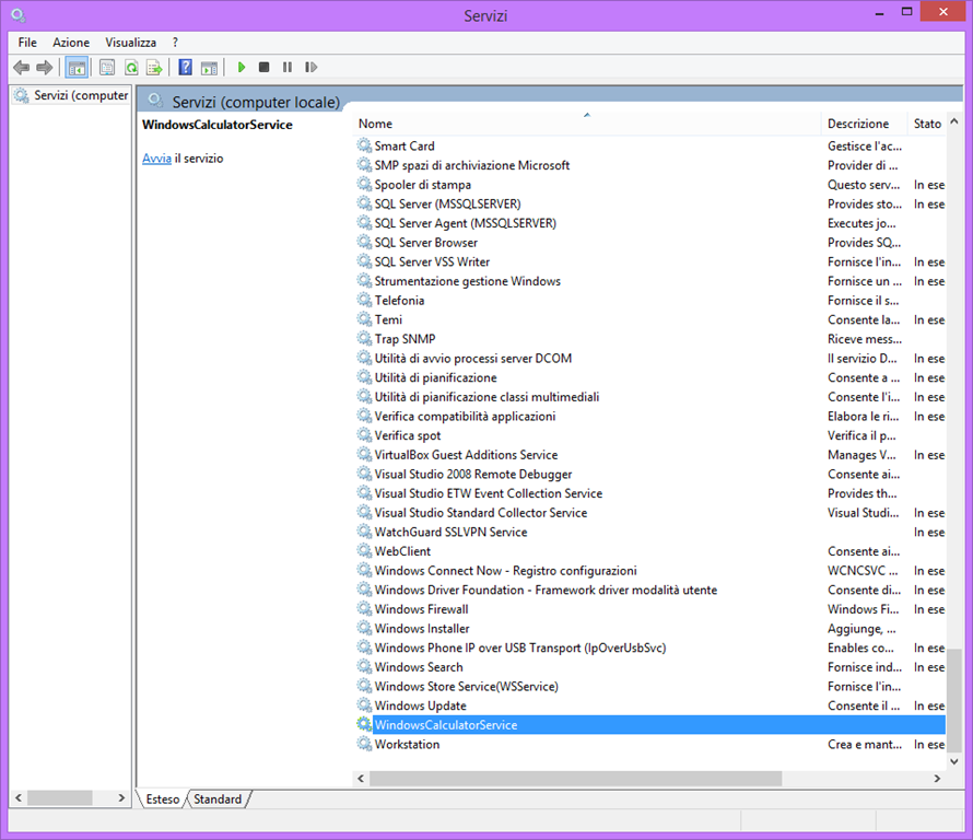 - Ecco che il servizio compare correttamente nell’elenco dei servizi di Windows e lo avvio.