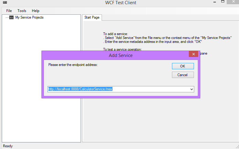 - Avviando il WCF Test Client inserisco l’endpoint specificato nel file app.config.