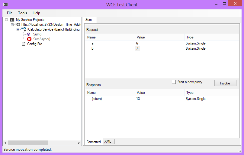 - E con il WCF test client le somme funzionano.