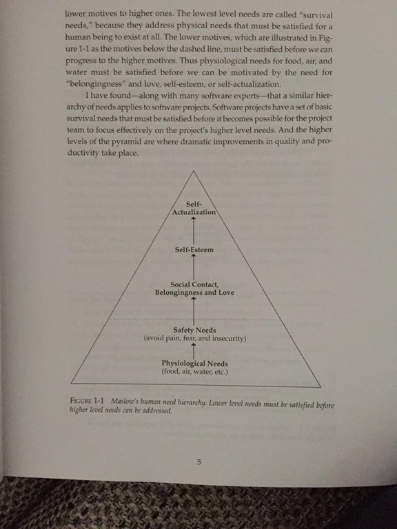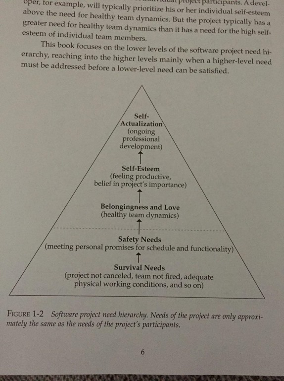 Se un progetto non riesce a soddisfare i suoi bisogni di sopravvivenza e sicurezza non sarà possibile raggiungere i più alti livelli di stato dell’arte del software.